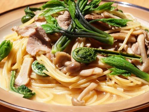 食べるときは、温かい料理で。春先は消化機能が落ちやすいとされているので、胃腸にやさしい料理を心がけましょう。おすすめは山菜をたっぷり入れたパスタやリゾット。たらの芽などの山菜なら、天ぷらにするのもおいしいですし、緑たっぷりの山菜鍋もいいですね。合わせる食材は、鶏の胸肉やささみなど、消化がよいものを。豆腐を入れると、カロリーを控えながら満足感も得られます。