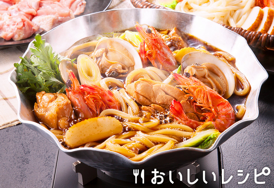 - おもてなしうどんすき鍋魚介の具材でちょっと贅沢な味わい、おもてなしのうどんすき鍋。