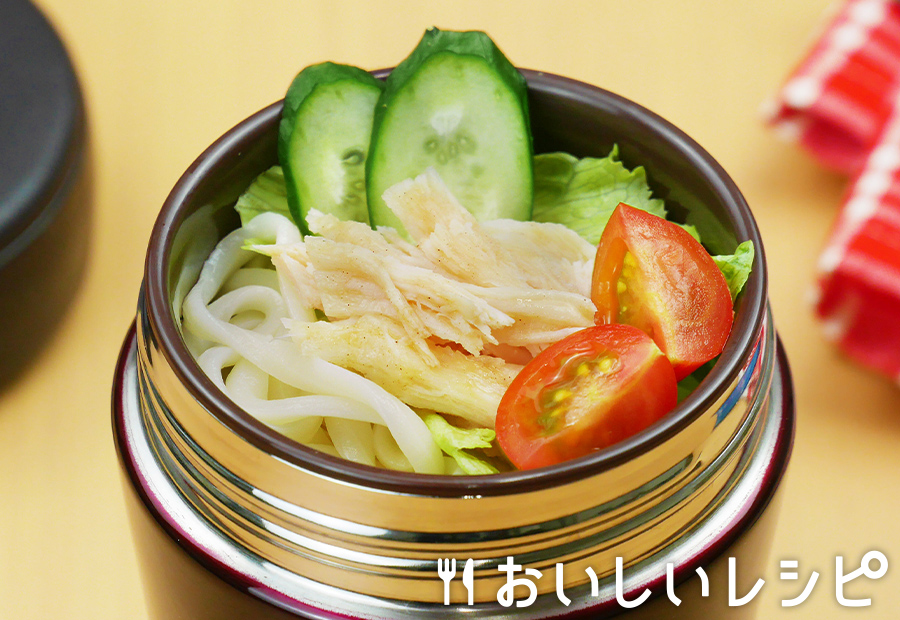 - 冷たい麺弁当 サラダうどんスープジャーと「プチッとうどん」で冷製ランチ! 野菜も一緒に摂れるサラダうどんは暑い季節にピッタリ!