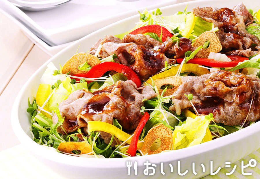 - 焼肉サラダお肉がさっぱり食べられるのが◎ メインのおかずにもなる1品です。