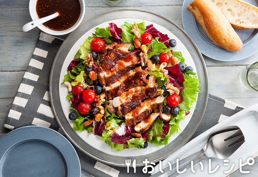 - 黄金パワーサラダ CHICKENグリルチキンで豪快サラダ!「黄金の味」はフルーツベースだから、果物とも好相性!