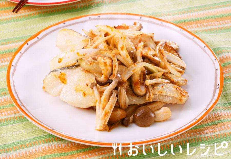 - たらのソテー 黄金きのこソースタンパクな味の白身魚に、きのこソースをかけて。「黄金の味」は少ない量でも、しっかり味を感じます。