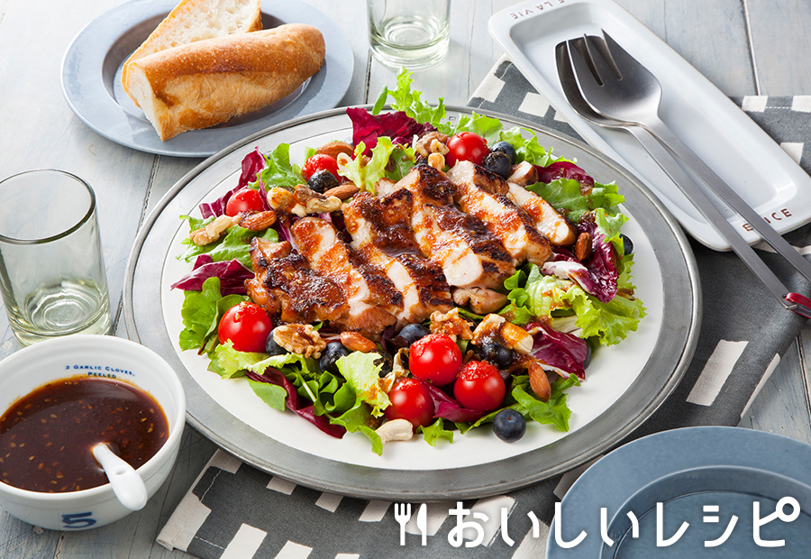 グリルチキンで豪快サラダ!「黄金の味」はフルーツベースだから、果物とも好相性!