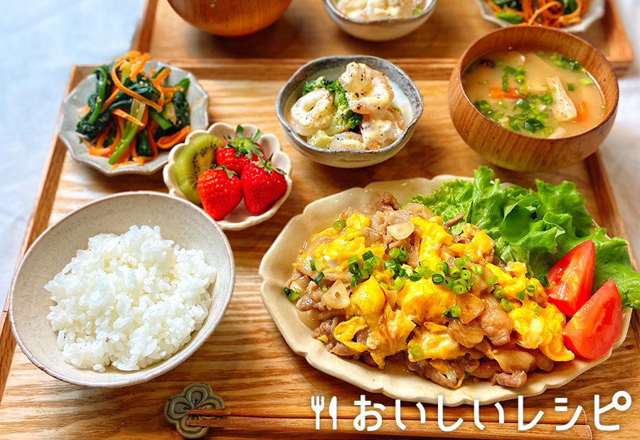ふんわり卵がおいしい豚こまの炒めもの。たれのコクとポン酢のすっきり感で大人も子どもも大満足の味わい!