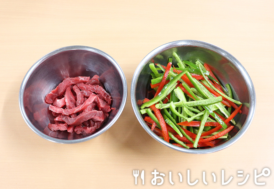 牛肉(または豚肉) 50g ピーマン 中3個(約90g) エバラプチッと中華 青椒肉絲 1個 サラダ油 適量