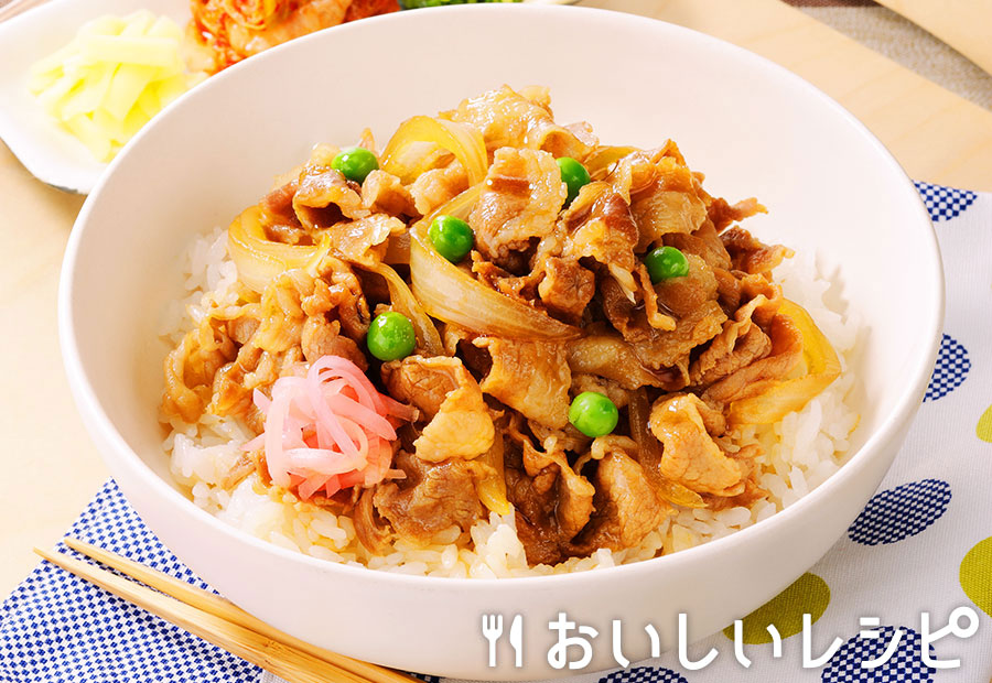 お肉とたまねぎをさっと煮て、ごはんの上にかければ、あっという間に出来あがり!